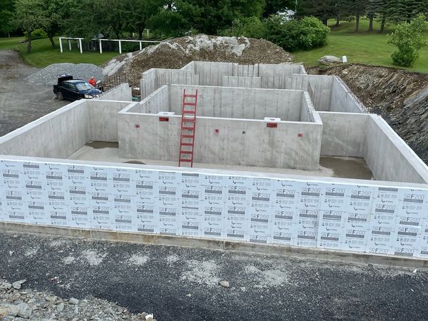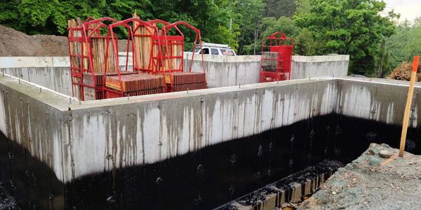 Application sur des surfaces irrégulière, le CR60 des produits Condor permet une imperméabilisation des fondations de béton.